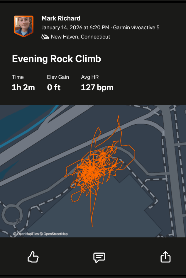 This episode is all about themes, reflecting on the year and lessons gleaned. Mark tries bouldering again. The Strava map was quite intense.